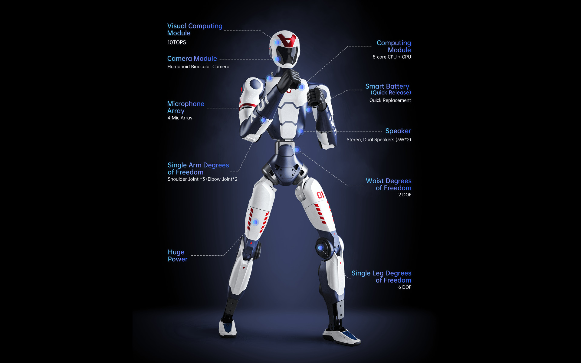 Incorpora un modelo multimodal basado en LLM que reconoce voz e imágenes, permitiendo una interacción natural e intuitiva. Es capaz de aprender por imitación y por refuerzo, adaptándose a diversas tareas con precisión. Su estructura bípeda de 26-40 grados de libertad, sensores avanzados y conectividad WiFi6/Bluetooth 5.2 facilitan movimientos ágiles y respuestas inteligentes. Ofrece interfaces de control abiertas compatibles con plataformas de simulación.