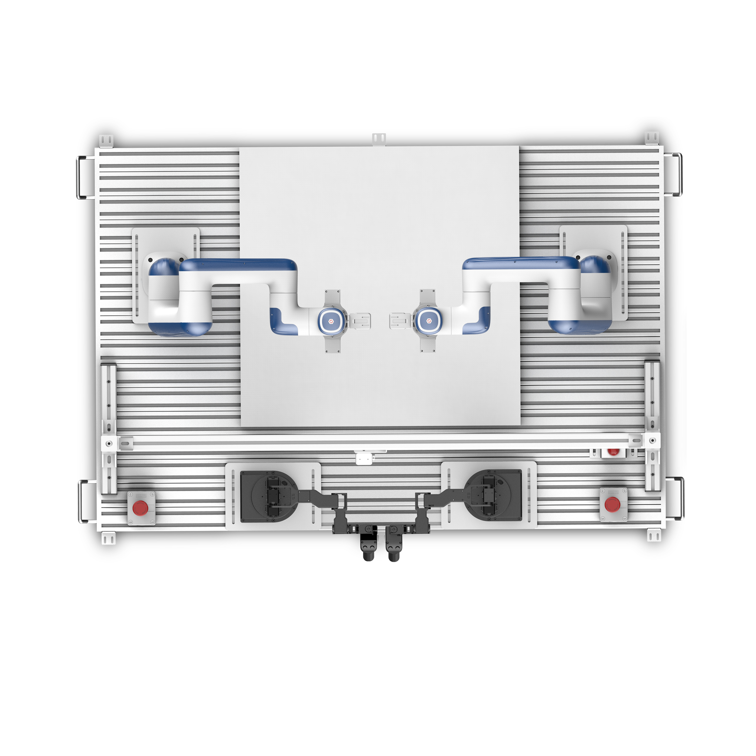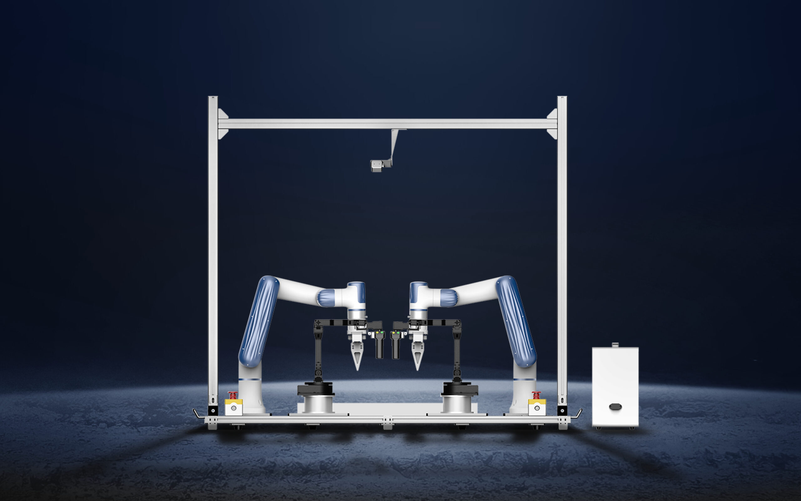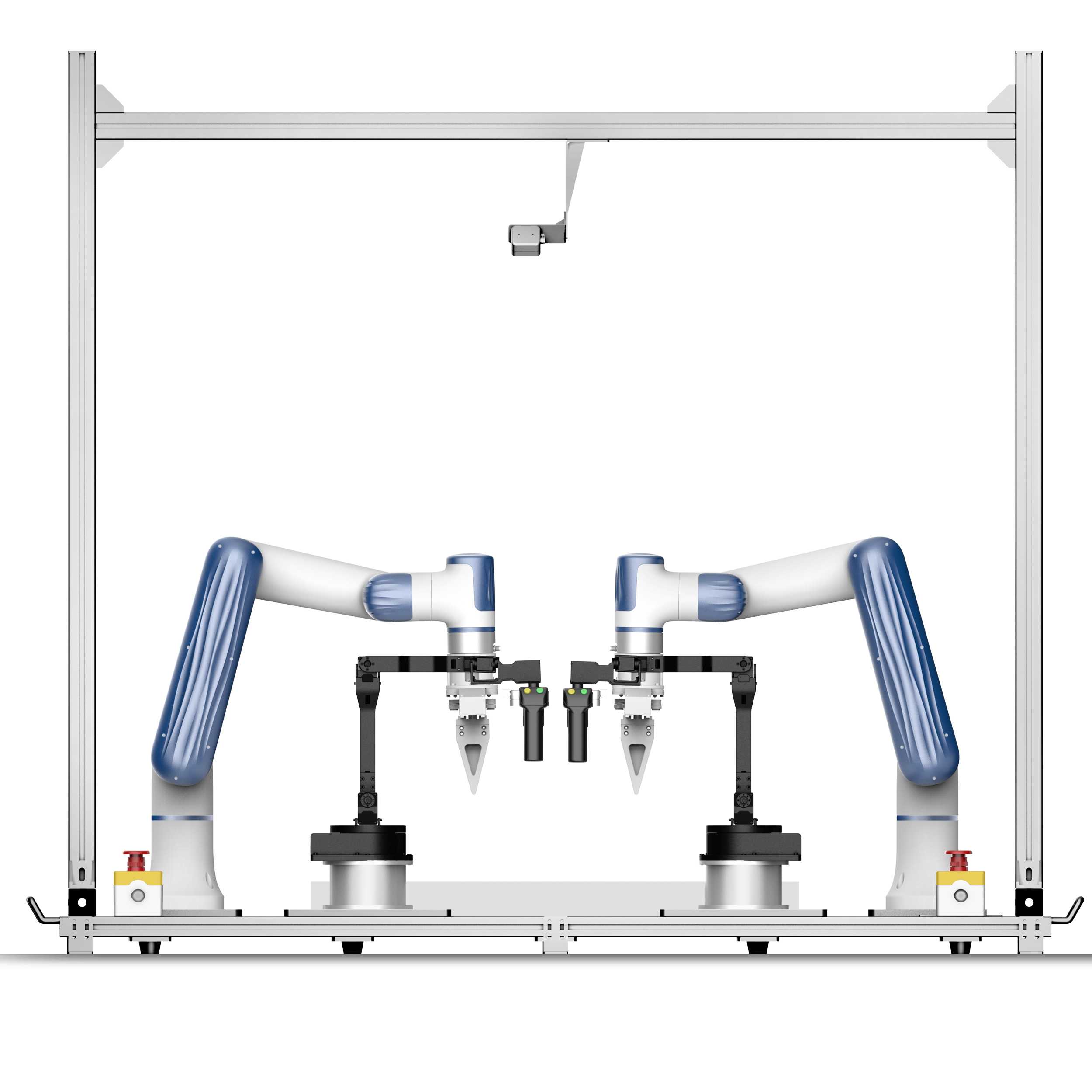 • Sistema robótico de doble brazo para recopilación de datos y entrenamiento de IA.