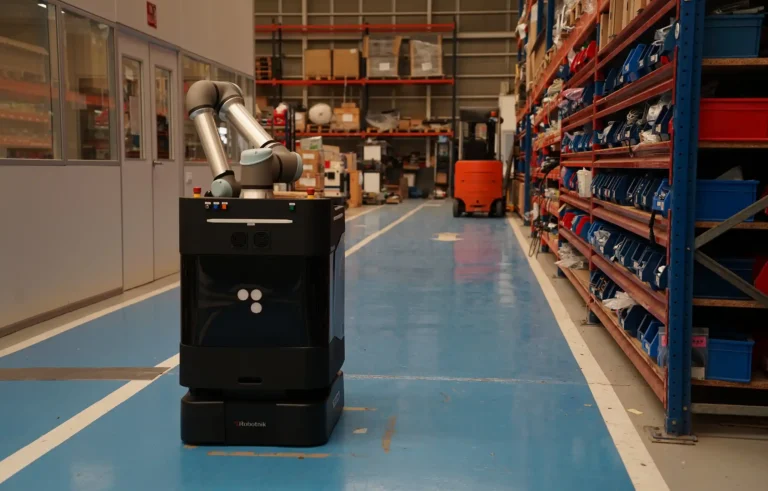 The RB-THERON+ is a compact and versatile mobile manipulator, ideal for indoor pick & place operations in confined spaces such as narrow hallways in industries, laboratories, and warehouses.
